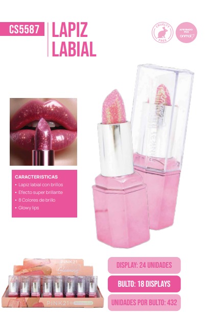 LABIAL CON GLITTER EN BARRA PINK21 CS5429