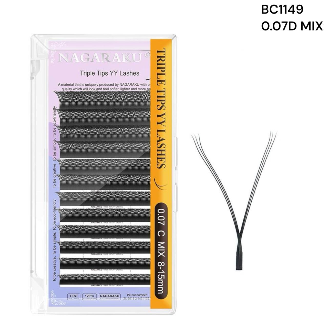 EXTENSIONES DE PESTAÑAS TECNOLOGICAS 2D TRIPLE TIPS YYY NAGARAKU 0.07D MIX BC1149